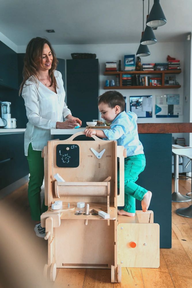 Gib deinem Kind einen Platz direkt neben dir am Tisch oder an der Arbeitsplatte – spannend und unterhaltsam! Dafür gibt es die Lernturm-Funktion von Leea Abenteuerecke.